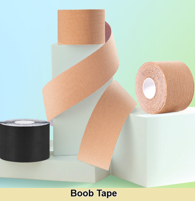 Boob tape, also known as breast tape or body tape, is an adhesive tape designed to lift, shape, and support your breasts. It’s typically made from a flexible, breathable material like cotton or synthetic fibers, and it comes with a strong adhesive backing that sticks to the skin without causing irritation.